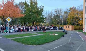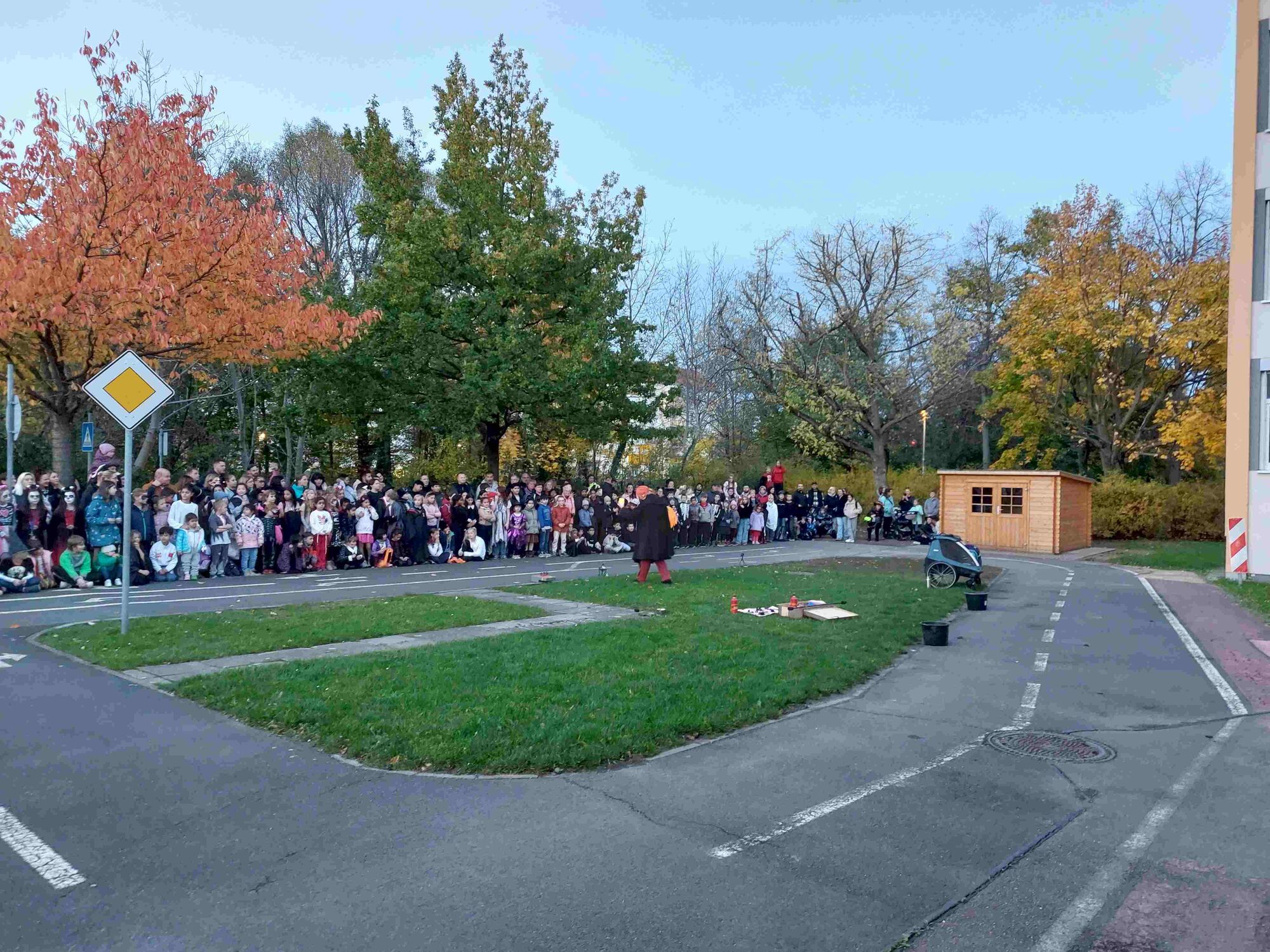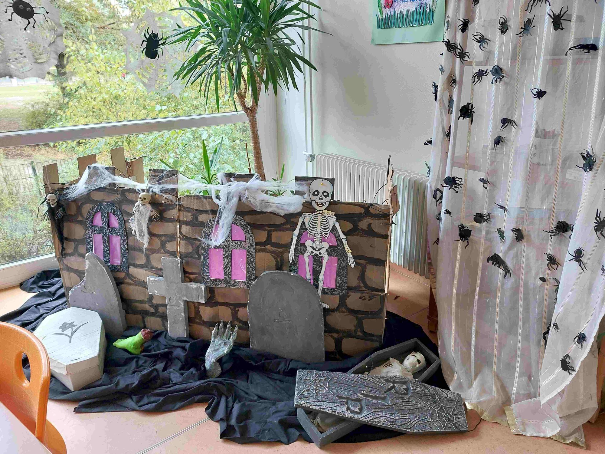 Es gab eine Gespensterdisco, eine begehbare Geisterbahn, ein Gruselkabinett und eine gruseligen Bewegungsstrecke in der Turnhalle.