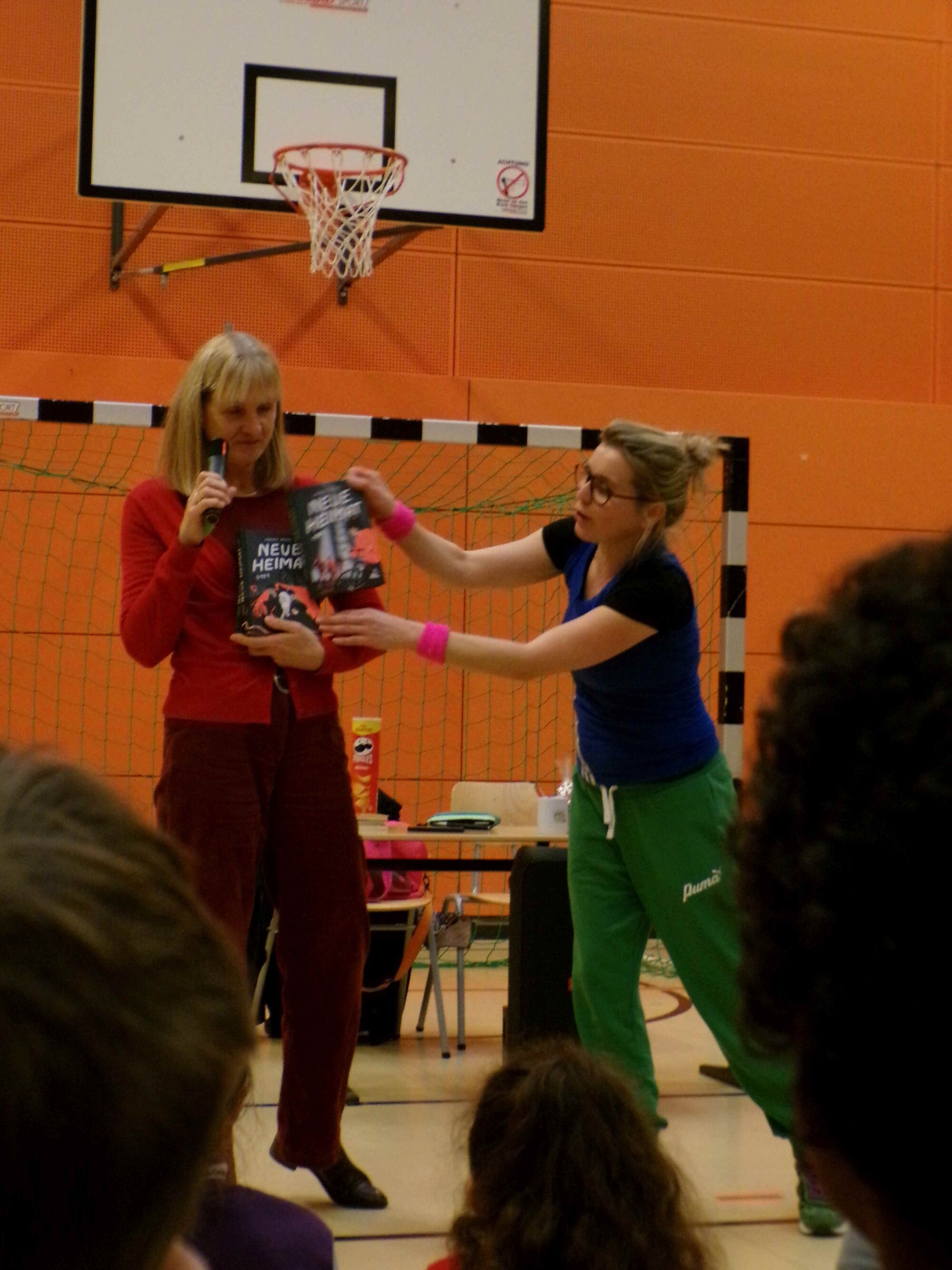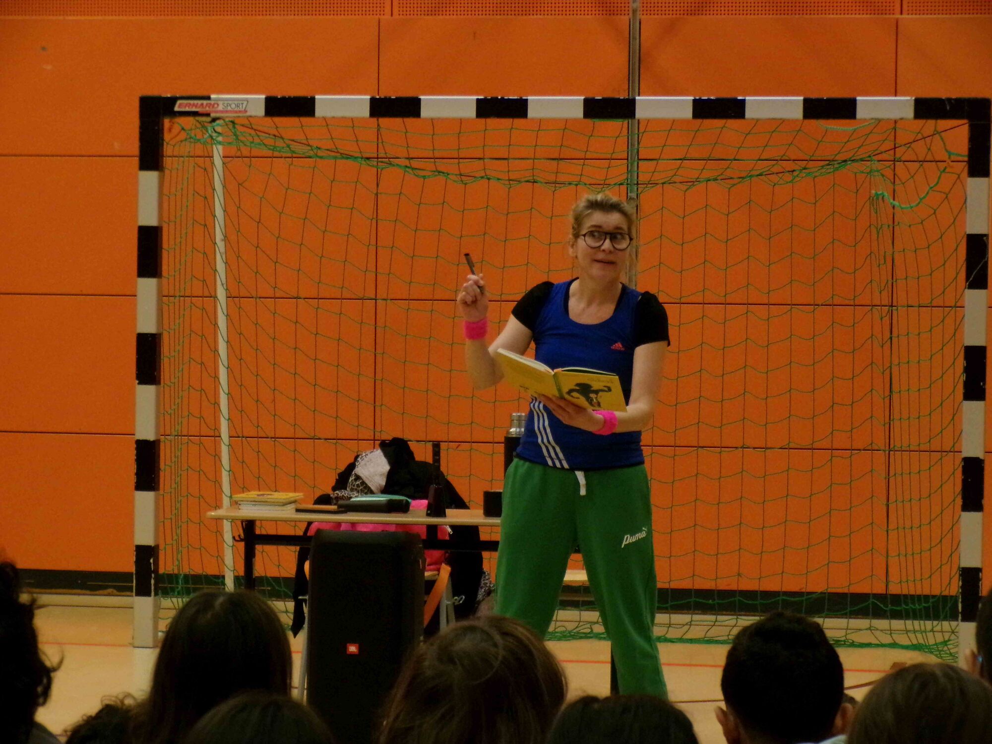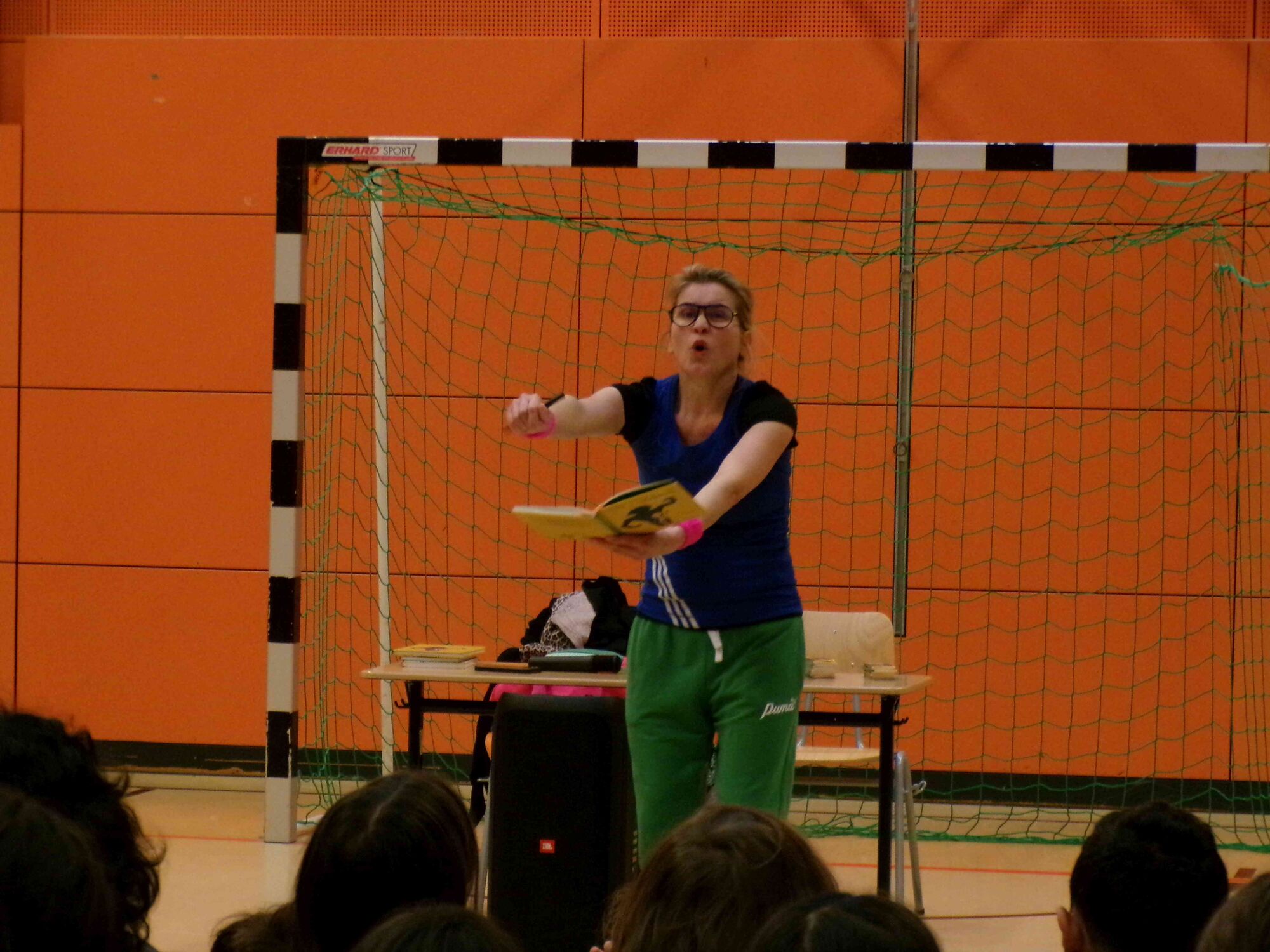 Am 10. Dezember las die Autorin Frauke Angel in unserer Turnhalle aus ihrem neuen Buch "Ein Liekesch für Jascha" vor. Sie wurde 2001 als Lesekünstlerin ausgezeichnet, hat viele Jahre als Schauspielerin gearbeitet und spielte die Geschichte vor den begeisterten Schülerinnen und Schülern fast vor. Einige ihrer Bücher sind in unserer Bibliothek zu finden. Frau Angel hatte für uns auch einige im Gepäck. Wir danken ihr und natürlich auch den Städtischen Bibliotheken Dresden für diese wunderbare Weihnachtsüberraschung.