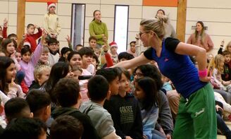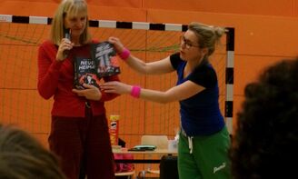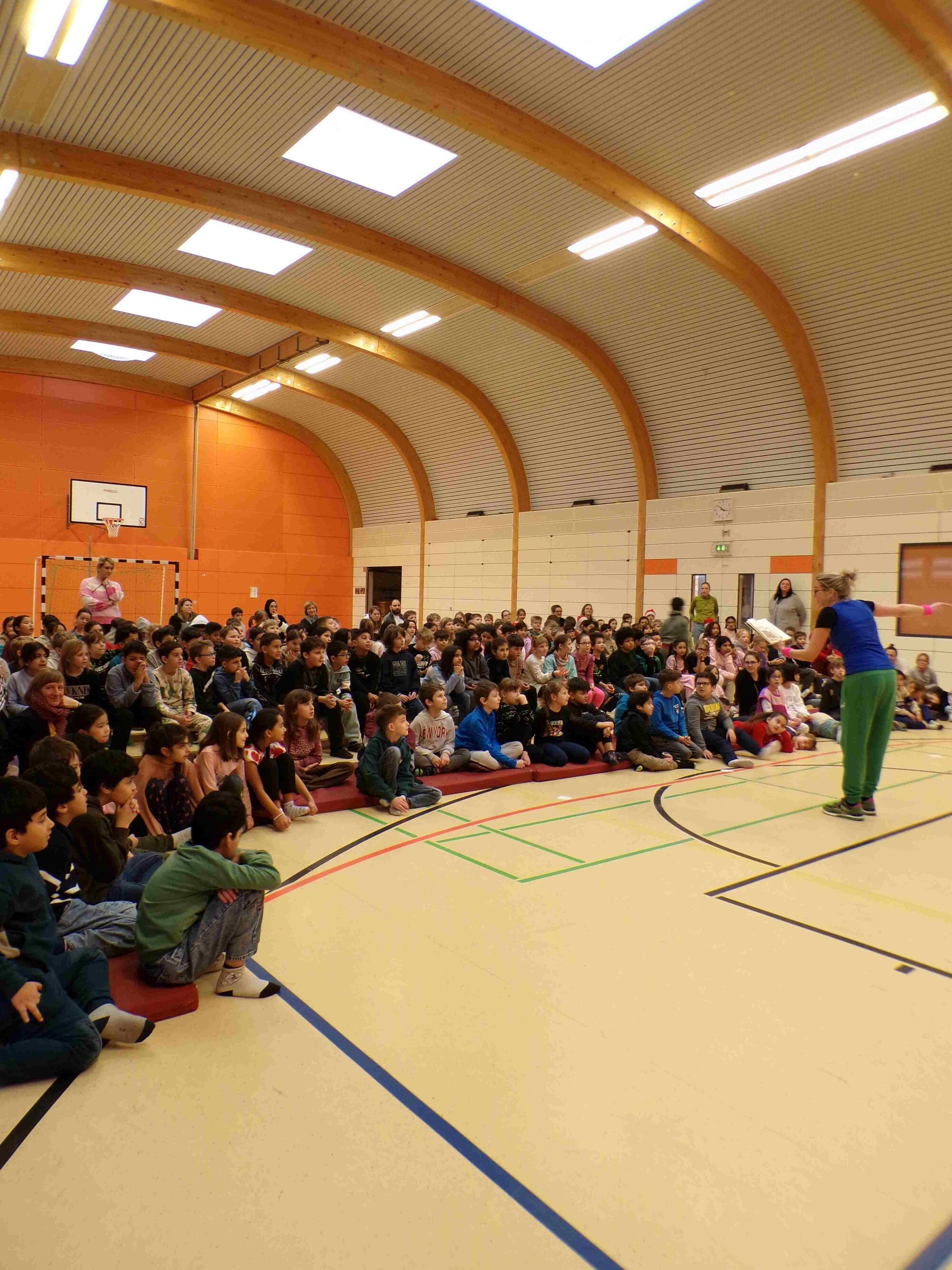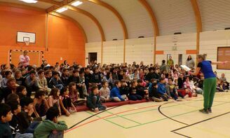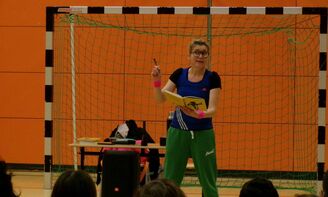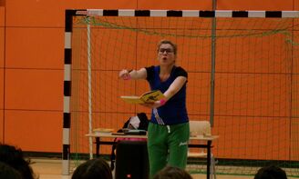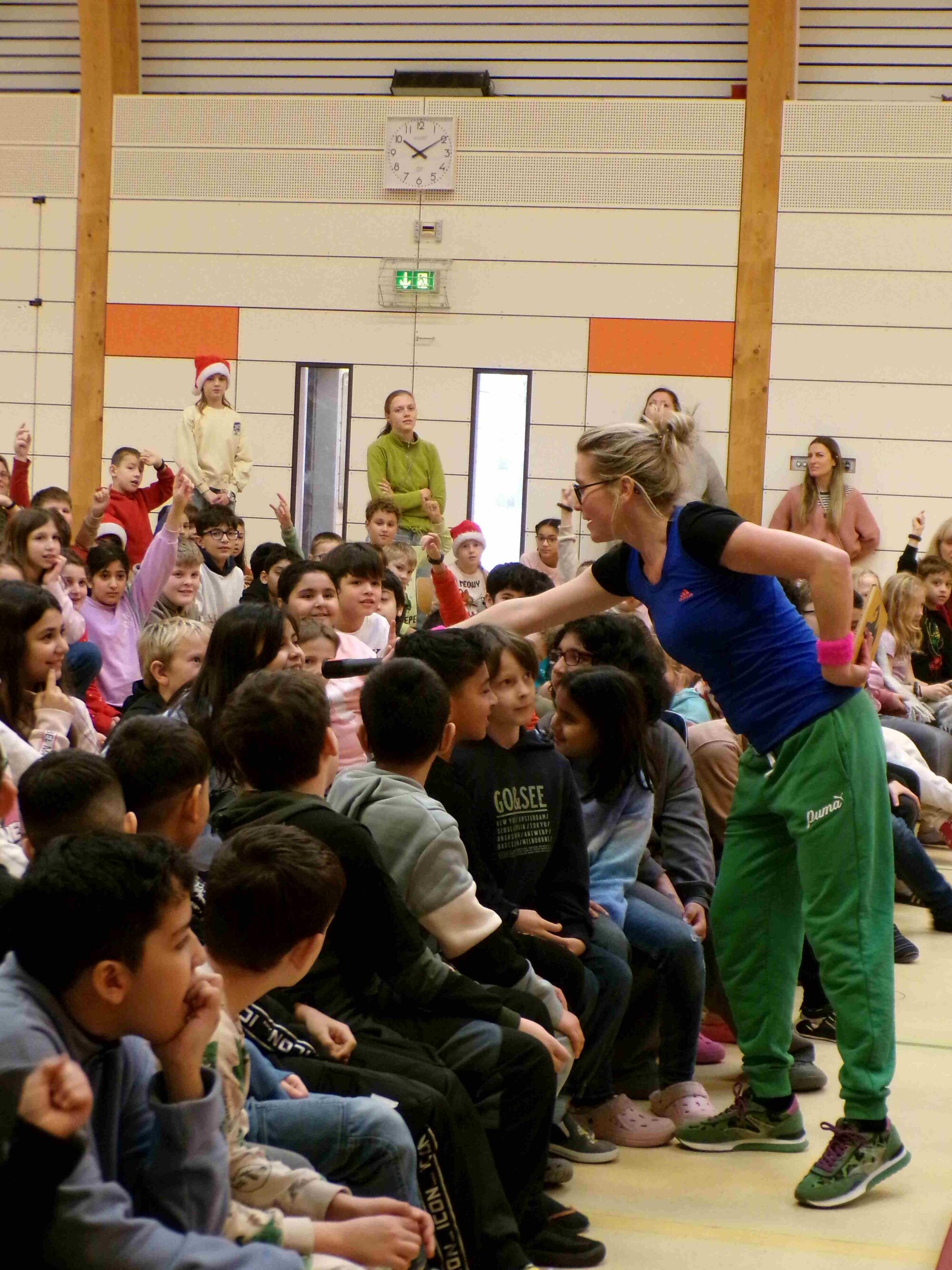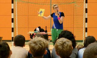 Am 10. Dezember las die Autorin Frauke Angel in unserer Turnhalle aus ihrem neuen Buch "Ein Liekesch für Jascha" vor. Sie wurde 2001 als Lesekünstlerin ausgezeichnet, hat viele Jahre als Schauspielerin gearbeitet und spielte die Geschichte vor den begeisterten Schülerinnen und Schülern fast vor. Einige ihrer Bücher sind in unserer Bibliothek zu finden. Frau Angel hatte für uns auch einige im Gepäck. Wir danken ihr und natürlich auch den Städtischen Bibliotheken Dresden für diese wunderbare Weihnachtsüberraschung.